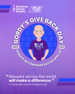 Gordy’s Give Back Day 2026 ELT Resources & Details Gordy’s Give Back Day on April 30, 2026, encourages Relayers to give or fundraise $43 (on 4/30) in tribute to Dr.